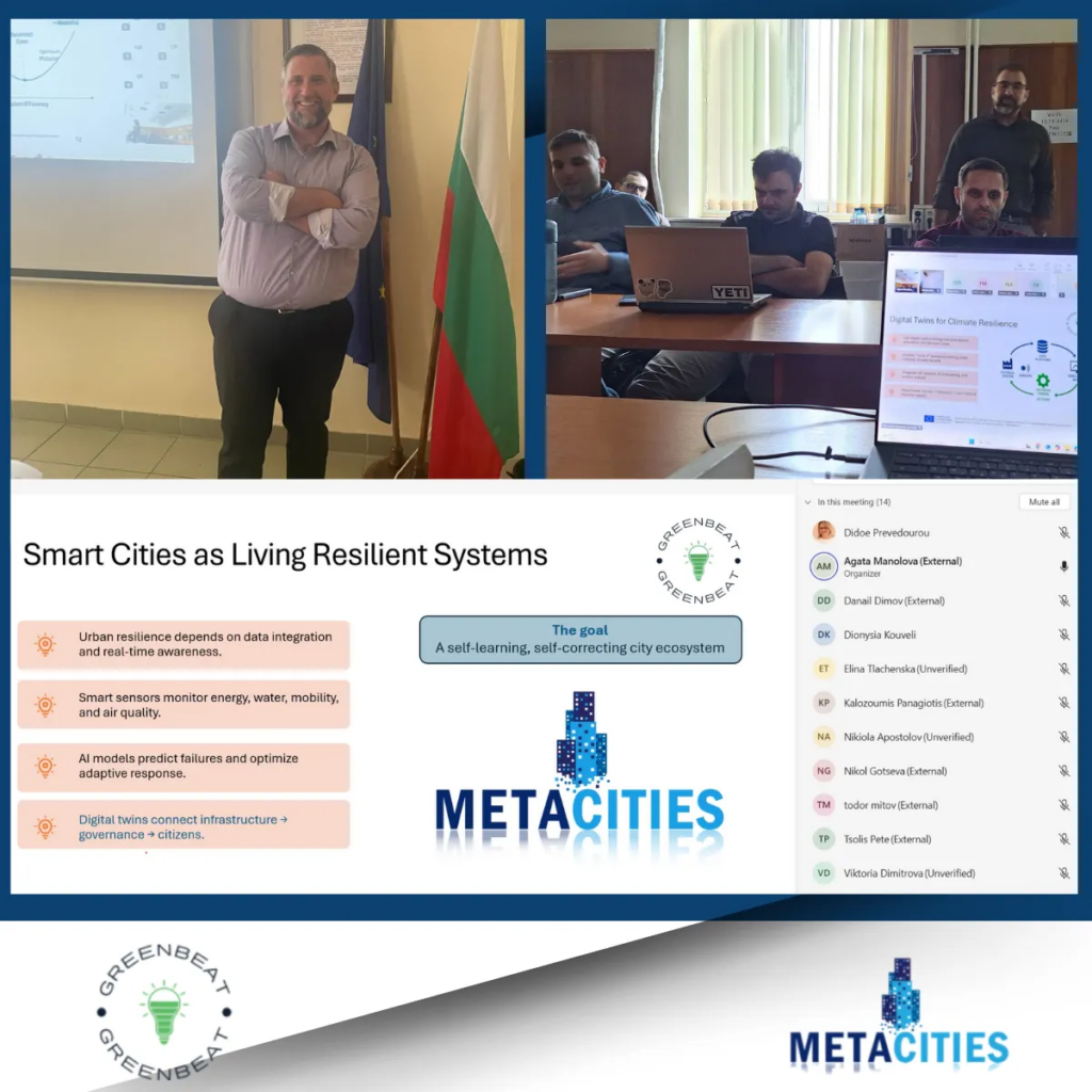 The event brought together academia, industry, and local authorities to explore sustainability, innovation, and urban resilience. Workshops focused on SDG-driven business models, resilience engineering, and EU-funded proposal writing, highlighting the strong partnerships between GREENBEAT, METACITIES, and their European collaborators.